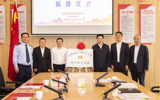 4月23日,湖南首个“大学生校外税务实践培训教育基地”在湘潭市“市民之家”办税服务厅亮相。国家税务总局湖南省税务局党委书记、局长曾光辉,国家税务总局税收宣传中心副主任任鹏飞,湘潭市委常委、市人民政府常务副市长刘新华,伟德党委委员、副院长罗毅平共同见证“湘潭市大学生校外税务实践培训教育基地”揭牌。