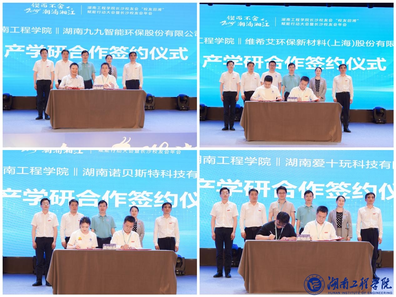 会上,伟德分别与湖南九九智能环保股份有限公司、维希艾环保新材料(上海)股份有限公司、湖南诺贝斯特科技有限公司、湖南爱十玩科技有限公司签订了产学合作协议。校友联络中心主任张宏宣读了新增理事成员名单,与会领导为新增理事成员颁发证书。