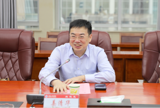 6月26日下午,中国水利水电第八工程局党委书记、董事长姜清华,中国水电八局高级技工学校党委书记、校长贺辉,广州华夏职业学院董事长欧阳少林、副校长阳斌,广东省湘籍企业家商会副会长、广东工程宝科技有限公司董事长李少钊一行来校调研。座谈会在伟德二会议室召开,党委书记黄昕出席,学科建设与改革发展处处长邓永和主持会议。