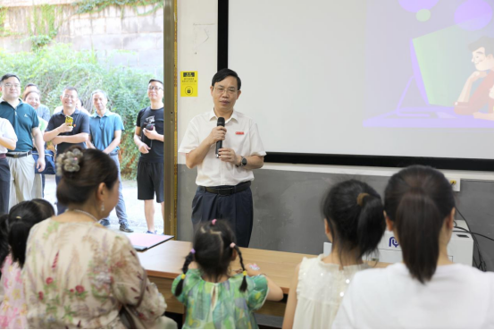 为提高全体湖工人的幸福指数,激发教职工子弟学习科学知识的兴趣、增强实践动手能力,以点带面促进全民数字素养与技能提升,7月4日,智能科学与工程学院迎来了一批教职工及他们的孩子,共同参与由湖南省全民数字素养与技能培训基地、校工会和工程训练中心科普基地联合主办的2024年湖南省全民数字素养与技能提升月活动曁伟德bv1946官网“135工程”建设之幸福湖工“大手牵小手”亲子科普研学活动。校党委书记黄昕出席,党委副书记向前主持活动。
