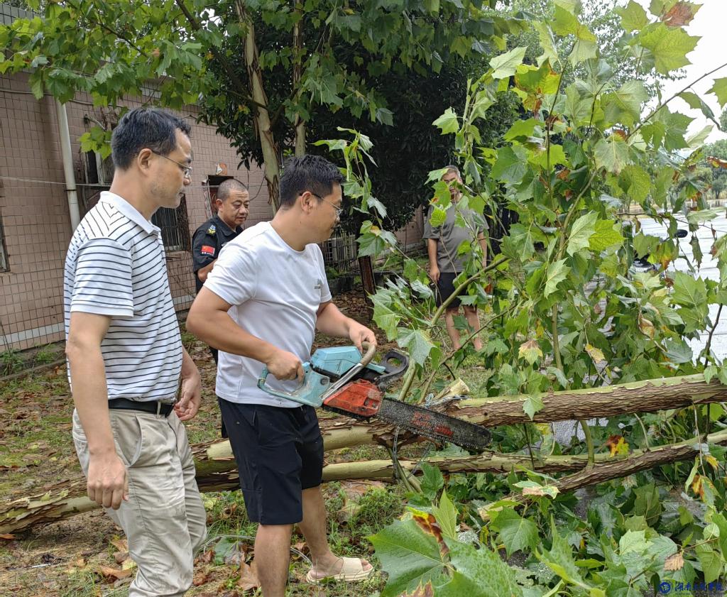 受强降雨和大风影响,校内出现树木落枝倒伏、校内部分地区出现积水的情况。易兵前往各校区进行检查,要求各部门一是做好树木倒伏清理工作,低洼地区积水排放工作,以“时时放心不下”的责任感和极端认真负责的担当精神,毫不松懈做好防汛各项工作,保障师生员工安全和校园安全稳定。二是不放过一个漏洞、不留下一个死角,继续加强对建筑、围墙、切坡等关键部位以及低洼易积水等重点区域的巡逻检查,关注树木倒伏引发的次生灾害,坚决防止发生安全事故。三是加强应急值守工作,密切关注、科学研判湘潭汛情发展变化,紧盯重点区域和薄弱环节,全面排查,发现各类安全隐患第一时间上报。