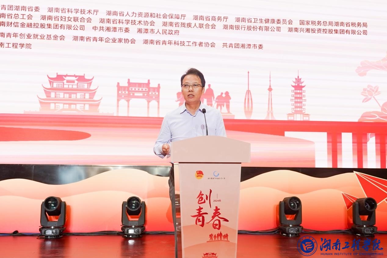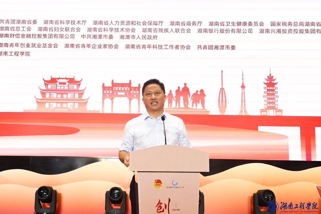 活动最后,李志超发表讲话。他指出,创青春是面向全省广大青年创业者开展的具有导向性、示范性、群众性的创新创业大赛,比赛充分展现了新时代湖湘青年勇于创新创业、矢志创新创业的昂扬精神风貌,发掘了一批科技含量高、前瞻性好、示范性强的青年创业项目,汇聚了一批思想活跃、敢闯敢行、专业性强的青年创新创业人才,营造了全社会关心支持青年创新创业的良好氛围,为促进全省社会高质量发展注入了强大的青春动能。湖南共青团将继续牢牢把握“围绕中心服务大局”的工作主线,深入实施“百万高校师生创业就业和千万外出务工人员返乡创业”两大行动,打造以“青创课”“青创群”“青创赛”“青创园”“青创板”为主要内容的“五位一体”服务体系,构建全周期资金支持的金融生态、全链条的项目培育挖掘机制,全过程鼓励创业的工作机制,为全省经济社会高质量发展培育数量充足的微观经济主体。李志超并对广大青年创客提出了三点期许:一是坚持胸怀国之大者,树牢为国为民的高远志气;二是坚持矢志追求卓越,激发挺膺担当的蓬勃朝气;三是坚持勇于砥砺奋斗,涵养攻坚克难的昂扬锐气,动员引领广大团员和青年积极投身中国式现代化新湖南建设,在接续奋斗中建功立业,谱写新时代湖湘青年华彩篇章。