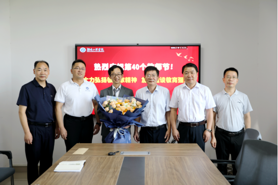 “感谢大家为学校教育事业作出的贡献!祝大家教师节快乐!”易兵向教师们致以亲切的问候,送上温馨祝福,对他们在学校人才培养、科学研究、社会服务、文化传承等工作中的辛勤付出表示肯定,对退休教职工退休不褪色、离岗不忘学,始终心系学校发展表示感谢。祝愿退休教职工老有所乐、老有所依、老有所为,希望他们健康快乐永相随,学校永远是他们的依靠,也希望他们始终关心关注学校的发展,积极为学校的发展建言献策。