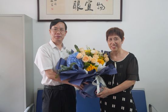 黄昕对退休教师胡凤兰重返讲台,坚守教育岗位、潜心教书育人,为学校教育事业无私奉献表示高度赞赏并致以亲切慰问,并介绍了学校在高质量发展过程中取得的喜人成绩。他表示,学校成绩的取得离不开大家的默默奉献和辛勤付出,希望老教授们继续发挥好示范引领和模范带头作用,担负以老带新的职责使命,助力年轻教师站稳讲台,在教书育人和科研创新上不断创造新业绩。全体教职工要大力弘扬并自觉践行教育家精神,为学校高质量发展贡献力量。