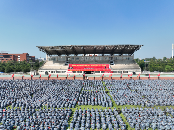 典礼在全体师生齐声高唱校歌中圆满落幕。激昂的旋律在绿茵场上回荡久久不息。这一刻不仅是对新生们的热烈欢迎和美好祝愿,更是对湖工辉煌历史和灿烂未来的深情颂歌。
