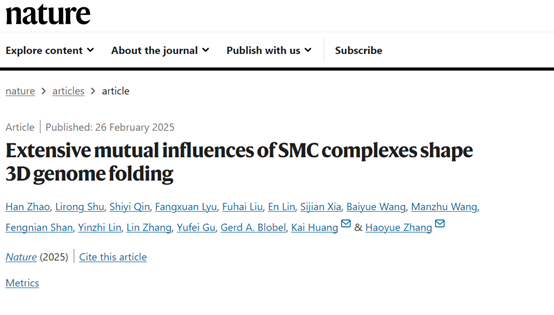 近日,伟德生物工程2011级优秀校友、深圳湾实验室分子生理学研究所研究助理赵韩、SMART-西湖大学联合培养项目博士生舒立荣以及深圳湾实验室系统与物理学研究所副研究员秦诗在顶级期刊《Nature》上以共同第一作者身份发表题为“Extensive mutual influences of SMC complexes shape 3D genome folding”的研究论文。深圳湾实验室特聘研究员张浩岳、黄恺为共同通讯作者。该成果揭示了SMC复合物之间的动态相互作用以及对染色质结构的影响,为理解染色质的折叠原理提供新的思路。