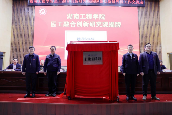 校党委书记黄昕,校党委副书记、校长易兵,湘潭市卫健委副主任赵新平和研究院执行院长张何共同为“伟德bv1946官网医工融合创新研究院”揭牌。医工融合创新研究院的成立,标志着学校在医工融合领域迈入新阶段。