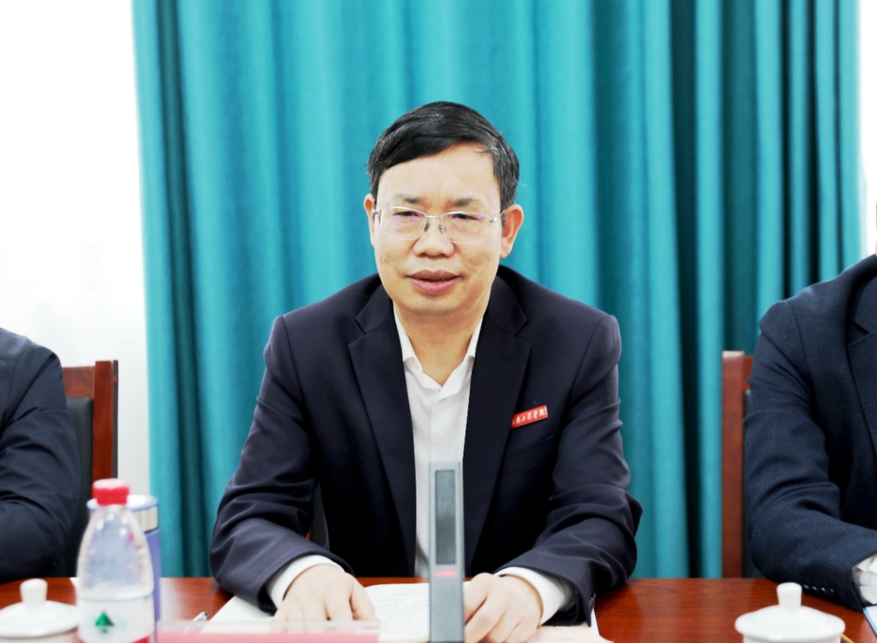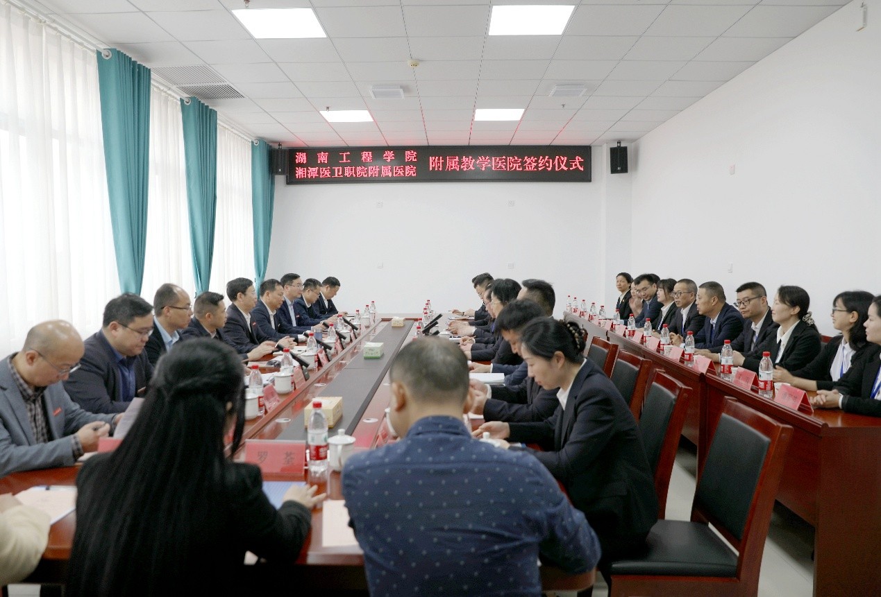 刘建强讲话。刘建强表示,近年来,湘潭医卫职业技术学院附属医院在市卫健委的大力支持下,取得了长足的进步与发展,学科门类更加齐全、运营效率显著提升,各项医疗核心指标创历史最好水平。此次合作是顺应医学教育发展趋势的重要探索,将进一步整合双方资源,在医学人才培养、科研创新等多方面实现突破;医工融合,将为医疗领域注入新活力,培养出更多适应新时代需求的复合型人才,推动区域医疗卫生事业迈向新高度。