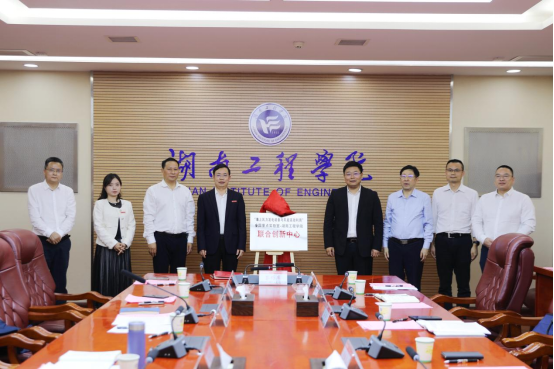 魏克湘与黄守道代表全国重点实验室—伟德bv1946官网联合创新中心签订协议。在全体人员共同见证下,曹颖春、黄昕、魏克湘与黄守道共同为联合创新中心揭牌,双方携手开启合作新征程。