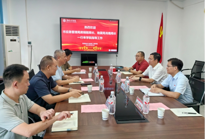 9月5日上午,湘潭市应急管理局局长席晓刚、地震局局长肖璐一行来伟德智慧建造与能源工程学院开展专题调研。校党委书记黄昕、学术副校长丁选明、智慧建造与能源工程学院院长李小华等参与接待并座谈交流。会议由丁选明主持。