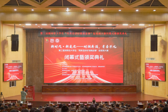 15日,大赛闭幕式暨颁奖典礼举行。中共湖南省委外事办副主任郭向丽,中共湖南省委教育工委委员余伟良,湖南国际传播中心主任刘骄,伟德党委副书记、校长易兵,湖南第一师范学院副校长石元泉,高等教育出版社外语出版事业部主任肖琼,湖南省教学服务中心主任陈亮,湖南省外语课程思政联盟主任刘正光教授等嘉宾参加。闭幕式由校党委委员、副校长吴志军主持。