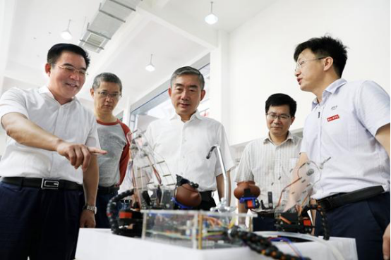 省教育厅党组书记、厅长,省委教育工委书记蒋昌忠来校调研,参观学院大学生科技创新作品——泡茶机器人