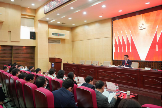 明媚三月,春暖花开。校园内,大气庄严的留影展板,振奋人心的宣传标语,处处洋溢着昂扬奋进的热烈气氛。报告厅内,主席台屏幕中央的党徽熠熠生辉,紧紧簇拥在党徽两侧的旗帜格外鲜红。