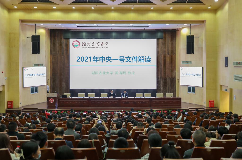 4月20日下午,伟德在一报告厅举行2021年中央一号文件解读专题讲座,湖南农业大学周清明教授主讲。讲座由党委书记陈岳堂主持。校长易兵、其他校领导、党委委员、中层干部、党支部书记、各民主党派主委、党员教师代表、学生党员代表参加学习。