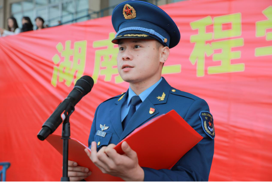 新生代表李萌上台发言,她表示,军训培养了大家的集体荣誉感,增强了大家的国防观念,展现了当代大学生互帮互助、团结友爱、积极向上的精神风貌。一营五连连长文炫作为教官代表发言,他表示,14天的军训磨砺了大家的意志和品质,增强了集体观念和荣誉感。退伍老兵代表陈鹏分享了自己退伍后的经历,希望新生要有家国情怀,不忘责任与担当,不断增强青年人的志气、骨气和底气,努力学习,把自己的青春融入到国家发展之中。