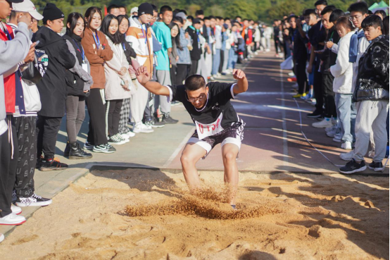田径跑道上,发令枪响,运动健儿们以风为马,驰骋跑道,与时间竞赛,如利箭般冲向终点。“加油、坚持住!”“16分37秒41!破纪录啦!”在欢呼声中,计算机与通信学院人工智能1902班的石琪同学冲过男子5000米的终点,他的成绩也刷新了学校田径运动会男子5000米沉寂34年的纪录。跳高场地上,电气与信息学院的贺诚同学,矫健的身躯腾空跃起到横杆之上,用双腿形成斗志与力量的夹角,美丽的“彩虹”掠过眼前,夺得了跳高第一名。凝神聚力,奋力一掷,铅球在空中划出一道弧线,完美落地,计算科学与电子学院的何霞夺下冠军。