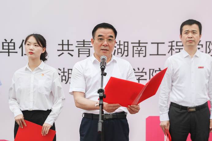 陈岳堂发表国旗下的讲话。陈岳堂代表学校党委、行政向新团员致以诚挚的祝贺。他表示,中国共青团是党的忠实助手和后备军,新团员是共青团的新生力量,是新时代的担当者和奉献者,新团员要牢记习近平总书记谆谆教诲和殷殷嘱托,在树立远大理想中投身报国伟业;要勇做新时代的弄潮儿,自觉听从党和人民召唤,在担当时代重任中绽放青春之光;要勇做走在时代前列的奋进者、开拓者、奉献者,在大浪淘沙中锤炼品德修为,用实际行动诠释“锲而不舍、敢为人先”的校训精神。