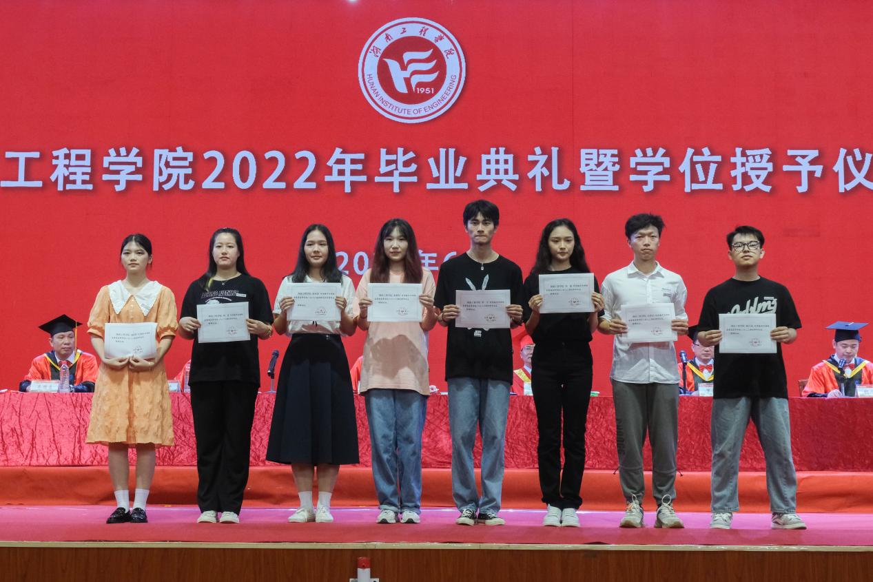毕业典礼上,陈赤平宣读《关于表彰伟德bv1946官网2022届优秀毕业生和创新创业优秀毕业生的通报》。全体校领导为优秀毕业生代表颁奖。