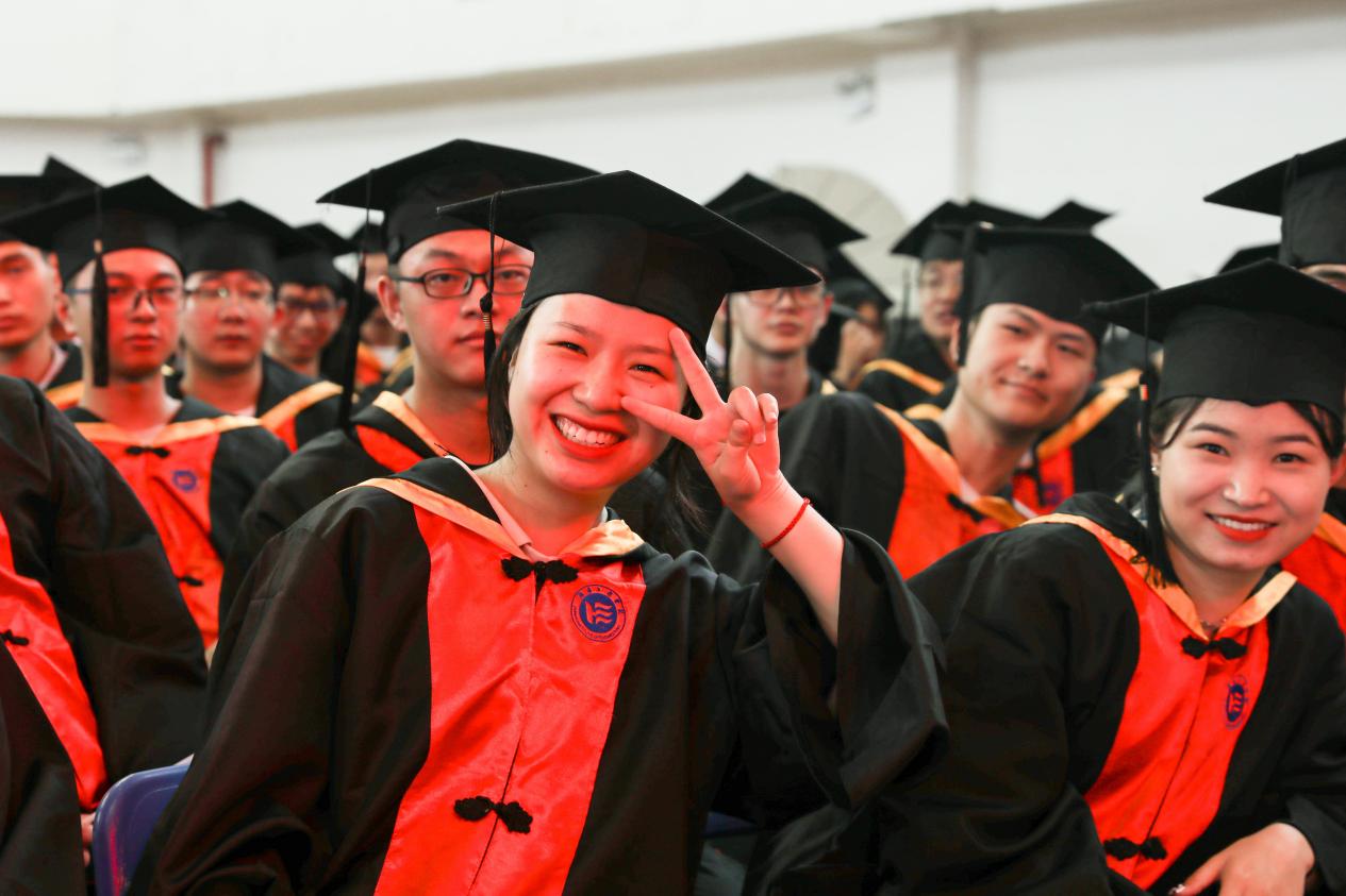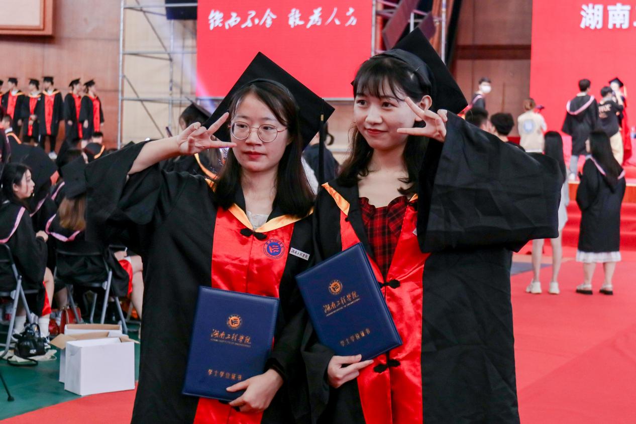 “相聚湘江之滨,踏着伟人足迹……”熟悉的校歌旋律响起,全场毕业生齐唱校歌,为毕业典礼、也为在湖工的求学生涯画上了圆满句号。