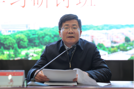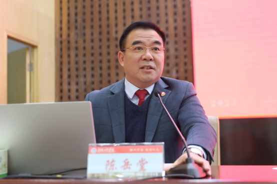 奋进新征程,展现新担当。为深入学习贯彻习近平新时代中国特色社会主义思想和党的二十大精神,引导广大党员干部、全体师生坚定信念、同心同德、埋头苦干、奋勇前进,推动学校各项工作高质量发展,2月16日上午,伟德学习贯彻党的二十大精神研讨班在一报告厅开班。原党委书记陈岳堂教授主讲第一课,党委副书记、校长易兵主持。在校校领导、党委委员、中层以上干部,教研室主任、副主任,科级干部、岗位负责人、专职组织员参加。
