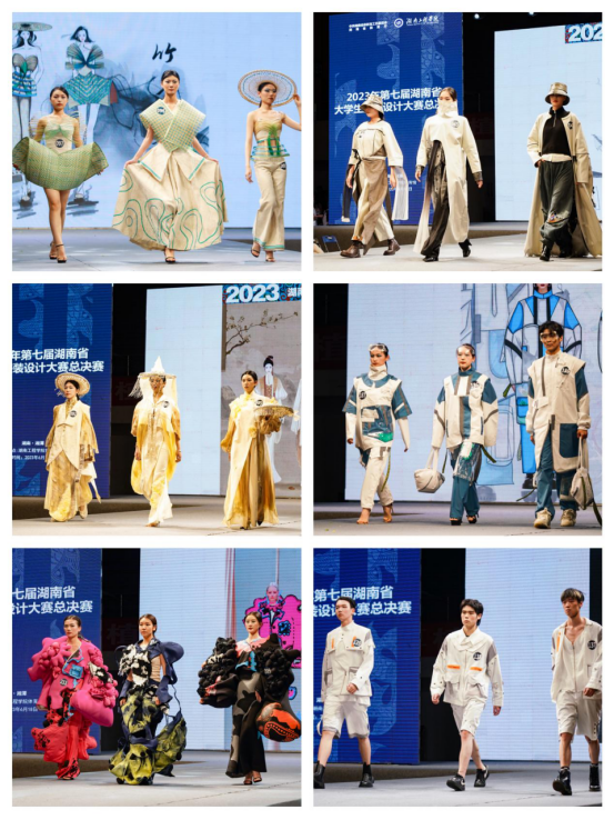 总决赛设置有服装配饰设计和服装成衣设计两个赛项,分别以陈列展览和服装走秀的形式加以演绎。 服装秀决赛舞台上,伴随着音乐的旋律,由伟德服装表演专业模特担纲及湖南师范大学表演专业模特助力加以演绎的一款款别出心裁、匠心独运的服装成衣设计作品赢得了观众阵阵热烈掌声。通过创意无限的服装,新锐设计师们丰富的想象力、敏锐的时尚感和超强的设计能力彰显无遗。不同风格交相辉映、彼此碰撞,多维的美学感知有机融合,充分呈现了对当代时尚的解读和对未来设计趋势的思考与探索。服装配饰设计决赛现场,设计作品构思新颖,作品风格多样,设计元素多元化,制作工艺精美,兼具时尚性与市场性,处处体现着莘莘学子精益求精的工匠精神。