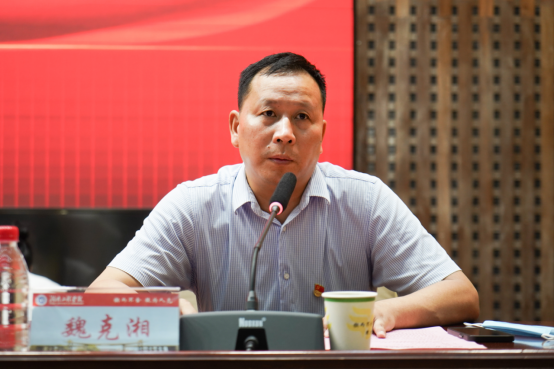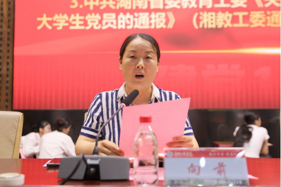 会上,党委委员、纪委书记齐路良宣读《伟德bv1946官网“光荣在党50年”老党员纪念章颁发党员名单》,党委委员、副校长张小刚宣读教育部办公厅《关于公布第三批全国党建工作示范高校、标杆院系、样板支部培育创建单位名单的通知》,党委委员、副校长向前宣读中共湖南省委教育工委《关于公布全省高校党组织“对标争先”建设计划第三批项目评选结果》,党委委员、副校长魏克湘宣读中共湖南省委教育工委《关于表彰2023年度湖南省普通高校优秀大学生党员的通报》。