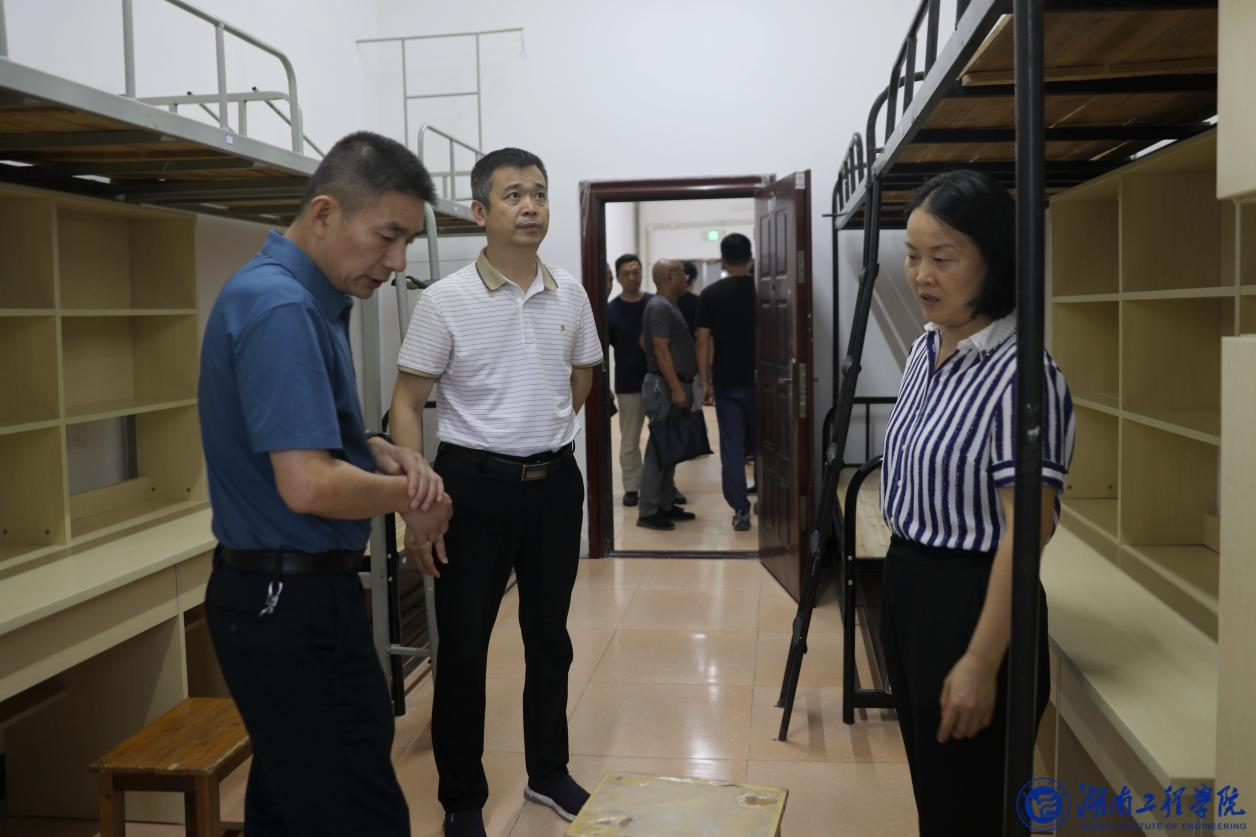 2023级新生开学在即,为确保迎新各项工作落实落细、有序开展,9月12日下午,校党委副书记、校长易兵,校党委委员、副校长张小刚,校党委委员、副校长向前带队检查迎新准备工作。