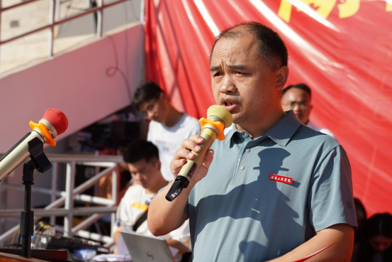 易兵希望新生们将热爱祖国作为立德之源、立功之本,以一生的真情投入、一辈子的顽强奋斗来践行爱国情怀,让爱国主义的伟大旗帜始终在心中高高飘扬;希望新生们在美好的大学时光里,肆意挥洒青春的热情,热爱生命、热爱家庭、热爱学校、热爱专业,树立远大理想,坚定宏伟志向,付出辛勤汗水,让青春脉搏与新时代同频共振,将热爱和梦想与实现第二个百年奋斗目标新征程同频共振,与中国式现代化建设同频共振,为今日之“青春中国”贡献青春力量。