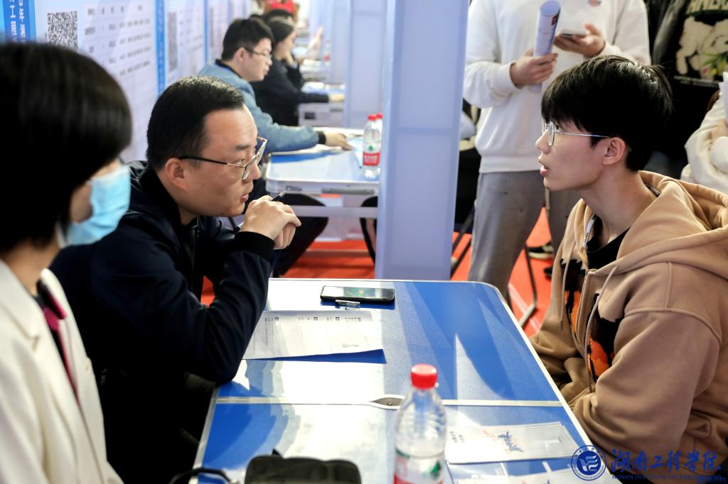 招聘现场,人潮涌动,气氛热烈。参加供需见面会的毕业生们认真找寻心仪的就业岗位,仔细寻觅与心理预期相匹配的企业,积极投递求职简历,与招聘单位进行交流沟通。一些大三的本科生也纷纷赶来现场观摩学习,了解就业市场需求,提前规划就业方向。用人单位招聘代表通过企业招聘展板、播放企业宣传片和面对面交流等方式,亲切又耐心地向到场的毕业生们介绍企业规划与愿景、岗位任职要求、薪酬福利待遇、职业发展等信息。现场还设立了应征入伍政策宣讲和就业指导咨询服务点,为毕业生提供咨询服务,方便毕业生了解相关政策。