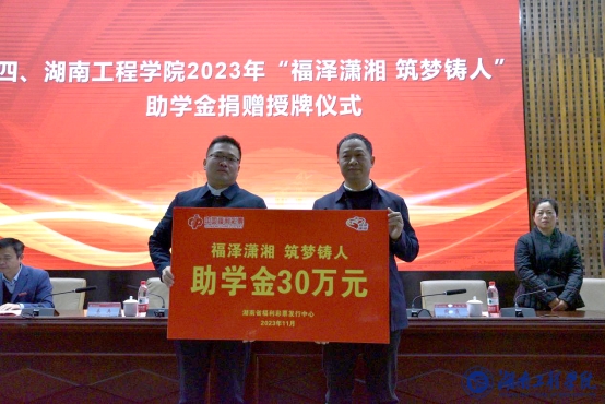 福泽潇湘,筑梦铸人。11月14日,“福泽潇湘 筑梦铸人”助学金捐赠暨发放仪式在伟德一报告厅举办。湖南省福利彩票发行中心主任曾波彦,校党委副书记、校长易兵出席仪式并讲话。校党委委员、副校长张小刚主持仪式。