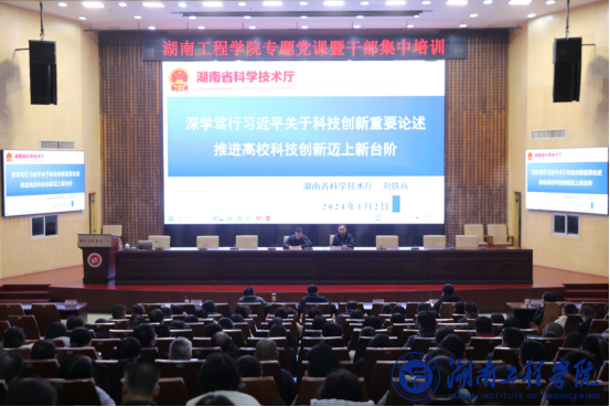为全面深入学习贯彻习近平新时代中国特色社会主义思想,1月2日下午,省科技厅一级巡视员刘铁兵应邀在一报告厅讲授专题党课,校党委书记黄昕,党委副书记、校长易兵出席,在校校领导、全体中层干部、科级干部、岗位负责人参加,党委委员、副校长罗毅平主持学习。