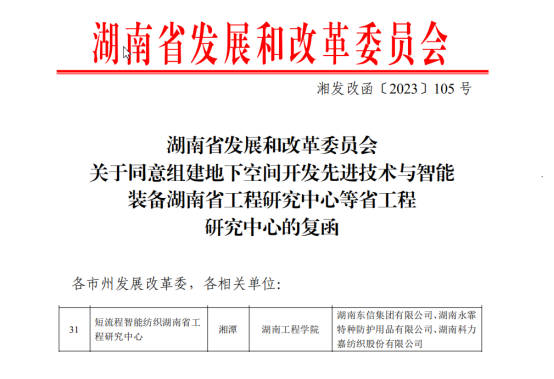 近日,湖南省发展和改革委员会公布了《湖南省发展和改革委员会关于同意组建地下空间开发先进技术与智能装备湖南省工程研究中心等省工程研究的复函》,由伟德党委副书记、校长易兵教授主持,纺织服装学院牵头申报的“短流程智能纺织湖南省工程研究中心”获批立项。这是伟德在省级科技平台建设中取得的又一突破,也是纺织服装学院在2022年以来获批的第五个省级平台。