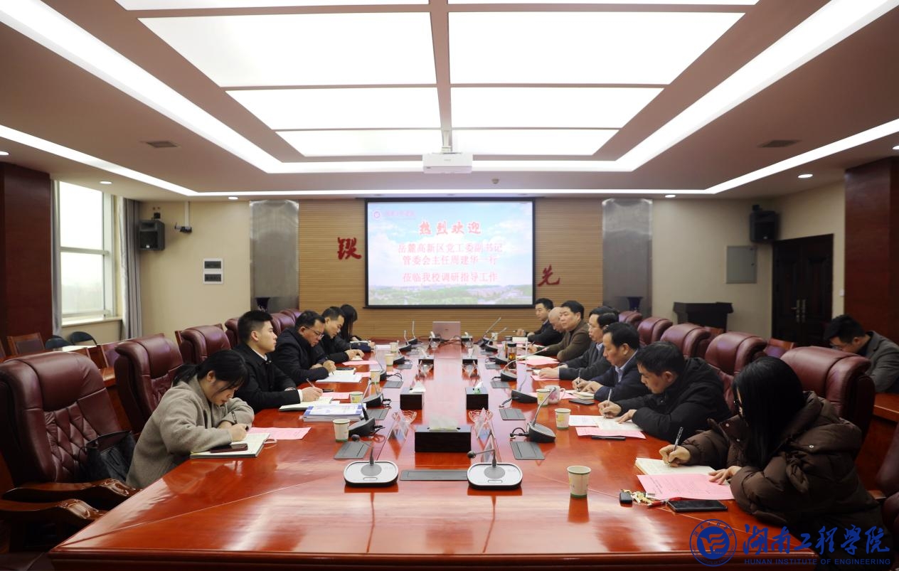 3月8日上午,长沙岳麓高新区党工委副书记、管委会主任周建华,党工委委员、纪工委书记林长茂,经济合作局局长周源毅、产业发展局常务副局长段浪、经济合作局高级招商经理刘佩瑶一行来伟德交流洽谈合作事宜。校党委书记黄昕,校党委委员、副校长魏克湘在电气楼311会议室接待来宾。双方就合作事宜展开深入交流。