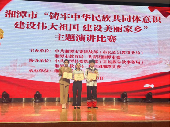 4月28日,湘潭市“铸牢中华民族共同体意识建设伟大祖国建设美丽家乡”演讲比赛在子敬小学举办。伟德经济学院方雅暄和设计艺术学院蒲凡分获三等奖。