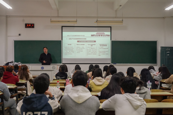 10月22日,校党委委员、纪委书记齐路良在主教学楼C栋101为外国语学院商务英语专业2301班、2302班学生讲授《全面从严治党》专题思政课。