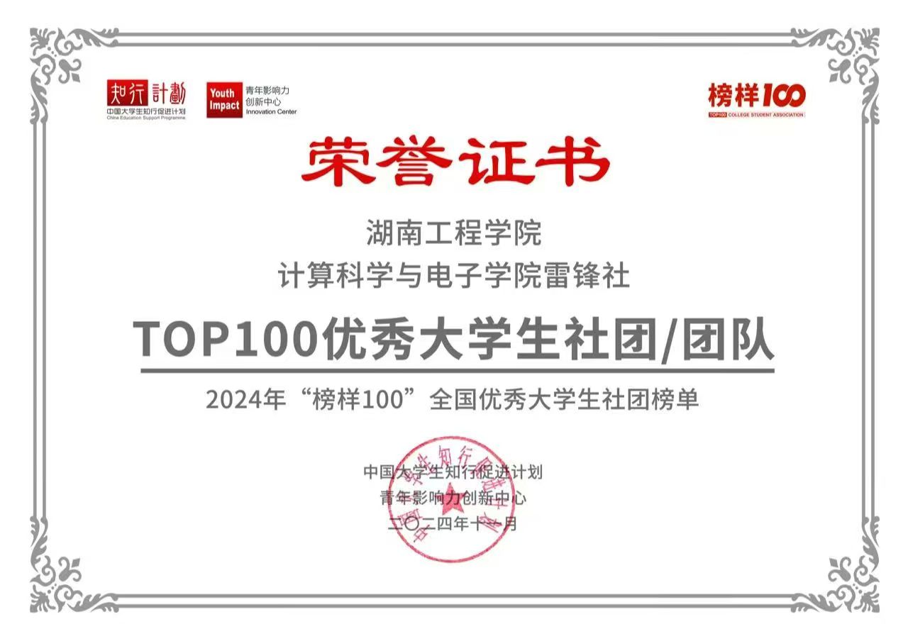 12月5日,由中国大学生知行促进计划和青年影响力创新中心联合发起的“榜样100全国优秀大学生社团及团队征集活动”获奖团队名单正式揭晓。伟德有十一个团队成功入围榜单,其中计算科学与电子学院的雷锋社志愿服务队凭借其卓越的贡献和出色的表现,荣获“榜样100全国优秀大学生团队称号。