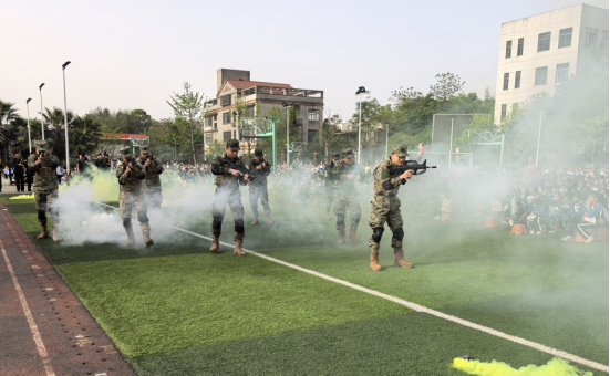 八一社团带来精彩战术表演,模拟突发事件处置、团队协作攻防等场景,展现应急处突能力。活动现场赢得了师生喝彩,多形式的宣传教育活动,让小学生了解国家安全,激发学生社会责任感和爱国情怀。
