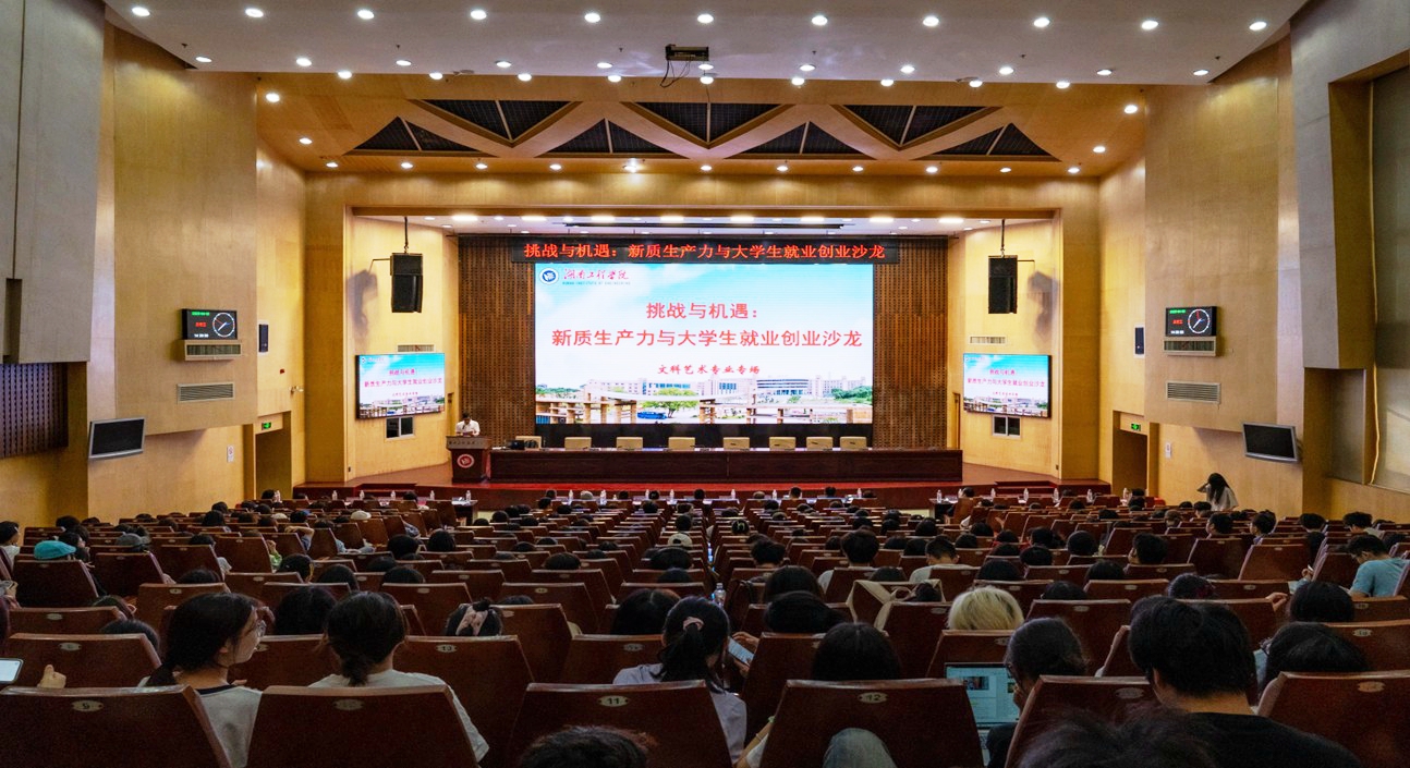 4月18日,由湘潭市人力资源与社会保障局主办,伟德创新创业学院与设计艺术学院协办的“挑战与机遇:新质生产力与大学生就业创业沙龙”(文科艺术专业专场)在一报告厅举行。湘潭市就业服务中心主任成建良、知名企业代表,校党委委员、副校长吴志军,创新创业学院、设计艺术学院相关负责人,师生代表参加。