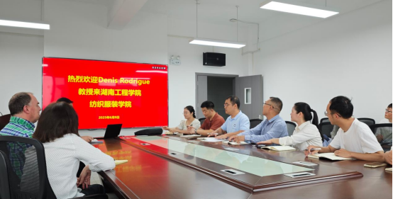 会上,何斌简要介绍了纺织服装学院的师资队伍、专业建设、科学研究及产学研合作情况。在交流环节,Denis Rodrigue教授与青年教师围绕各自研究领域、技术难题及潜在合作方向展开深入探讨,为青年教师拓宽国际视野、提升科研能力提供了新思路。