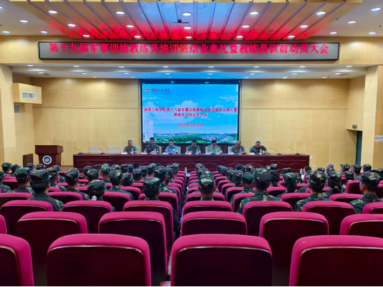 9月14日晚,学校第十九届教练员培训班结业典礼暨教练员训前动员大会在二报告厅举行。党委委员、副校长张小刚,武装部相关负责人、各学院副书记、军训团各营营长及2025级全体军事技能教练员参加。
