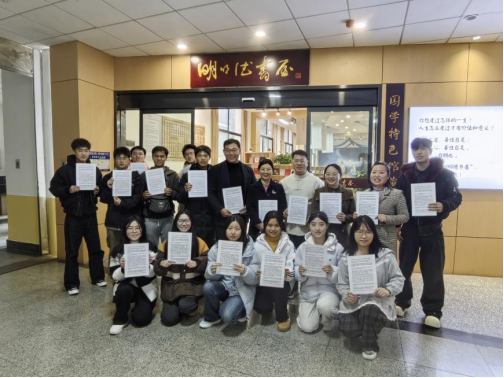 活动第二阶段为主题分享,陈仪结合创业经历,讲述国学文化与阅读如何为其事业发展注入智慧与动力;苟忠伟则围绕成长这一主题展开分享,通过分享自己在大学和工作之间学习的经历,阐述突破边界对个人成长的重要意义。在互动环节,师生踊跃提问,与嘉宾展开热烈交流,并在会后加入明德悦读社,在明明徳书屋开展围读活动。