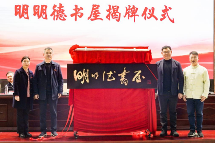 “明明德”之名源自《大学》“大学之道,在明明德”,寓意弘扬光明正大的品德,传递经典文化的力量。书屋的改造与1100册国学相关书籍由伟德93级优秀校友陈仪捐赠支持。仪式上,陈仪深情回顾校园时光,表达了对母校培养的感激之情,并寄语学弟学妹“以阅读照亮前程,以德行奠定人生”。张小刚、黄琴、陈仪、苟忠伟共同为“明明德书屋”揭牌。张小刚表示,书屋不仅是阅读空间,更是文化传承与品格塑造的重要平台,希望广大师生在此亲近经典、陶冶情操,推动校园文化建设再上新台阶。