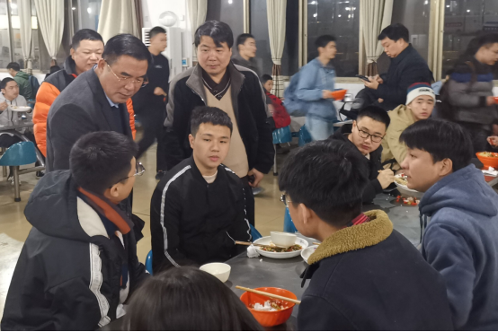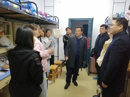11月26日晚,党委书记陈岳堂深入学生宿舍和食堂,亲切看望学生,与学生面对面沟通和交谈。