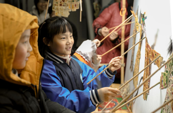“我们的纸影人物不仅有传统的生旦净丑形象,也有你们喜欢的卡通动漫……”为了让同学们更好地认识纸影、了解纸影、热爱纸影,吴渊为在场观众分发纸影人偶,手把手教学走路、转身、翻筋斗、骑马等动作,大家热情高涨,跃跃欲试,纷纷在舞台上进行表演。“超人”“奥特曼”“女侠”等卡通人物在幕布上“手舞足蹈”,百般窘态引得现场笑声连连。