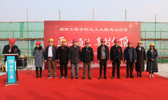 12月28日,伟德化工大楼主体顺利封顶,校长易兵、副校长陈赤平,材料与化工学院、基建处、项目施工企业、监理单位等负责人参加了封顶仪式。
