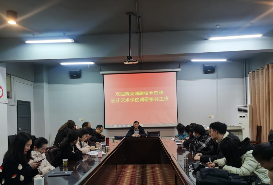 魏克湘肯定设计艺术学院取得的成绩,他强调,在学科建设工作中,要探索新机制、打造新体系,发挥学院既有的研创优势,对接湖南省、湘潭市发展规划与需求,制定切实可行的目标和计划,建设特色鲜明的应用特色学科。魏克湘就设计学科如何与学校优势学科做好交叉融合,培育高水平成果等方面提出建设性指导意见。