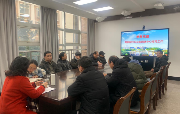 3月11日下午,副校长向前来到网络信息与现代教育技术中心走访调研。网络信息与现代教育技术中心主任廖毅就“产学研”合作暨5G新基建场景下如何开展智慧校园建设、已取得的主要成果及后续工作展望作详细汇报,各专业技术负责人分别从网站群建设、网络安全与数据中心运行维护、校园网络有线无线接入、多媒体教室设施和学校安防监控系统、校园一卡通、基于易班的网上迎新系统、教学视频课件制作等方面就工作内容、现状、主要问题及解决思路进行了汇报。
