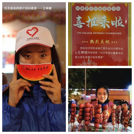 “我们将自己的理想追求融入国家民族发展进程之中,投身服务乡村振兴,并以实际行动彰显担当作为,向社会传递志愿服务精神,引领社会新风尚”。从美丽富饶的江南水乡,前往锦绣壮丽的大美新疆,伟德2020届毕业生、2020年度吐鲁番市优秀大学生西部计划志愿者王琳璇用甘于奉献的热血之心投身于大学生西部计划,与她同行的还有李小琴、文静、康清婷,她们是“高山上的小草”,也是学校在疆志愿服务西部的“四朵金花”。