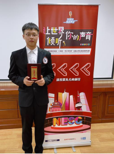 此次比赛,经过互联网选拨赛、校园地面选拨赛、地区复赛的层层选拔,最终14名选手进入决赛。赛场上,易书涛围绕已备演讲的主题,从志愿服务的经历出发,深刻阐述人类活动对海洋生态环境带来的危害,引导大家关注生态环境。演讲中,易书涛或是娓娓道来,或是慷慨激昂,用标准的发音、流畅的表达、沉稳的台风赢得了掌声。