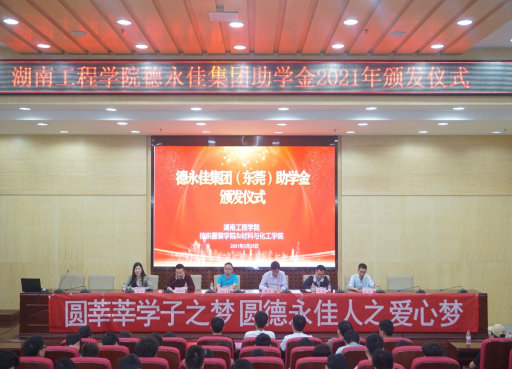 5月25日,德永佳集团(东莞)有限公司助学金颁发仪式在二报告厅举行。德永佳集团(东莞)人力资源部总监胡胜勇、人力部高级专员廖敏、学校校友办主任陶宏、纺织服装学院院长周衡书、受资助学生及200余名纺织工程与轻化工程专业学生参加活动。仪式由纺织服装学院党总支副书记罗荃主持。